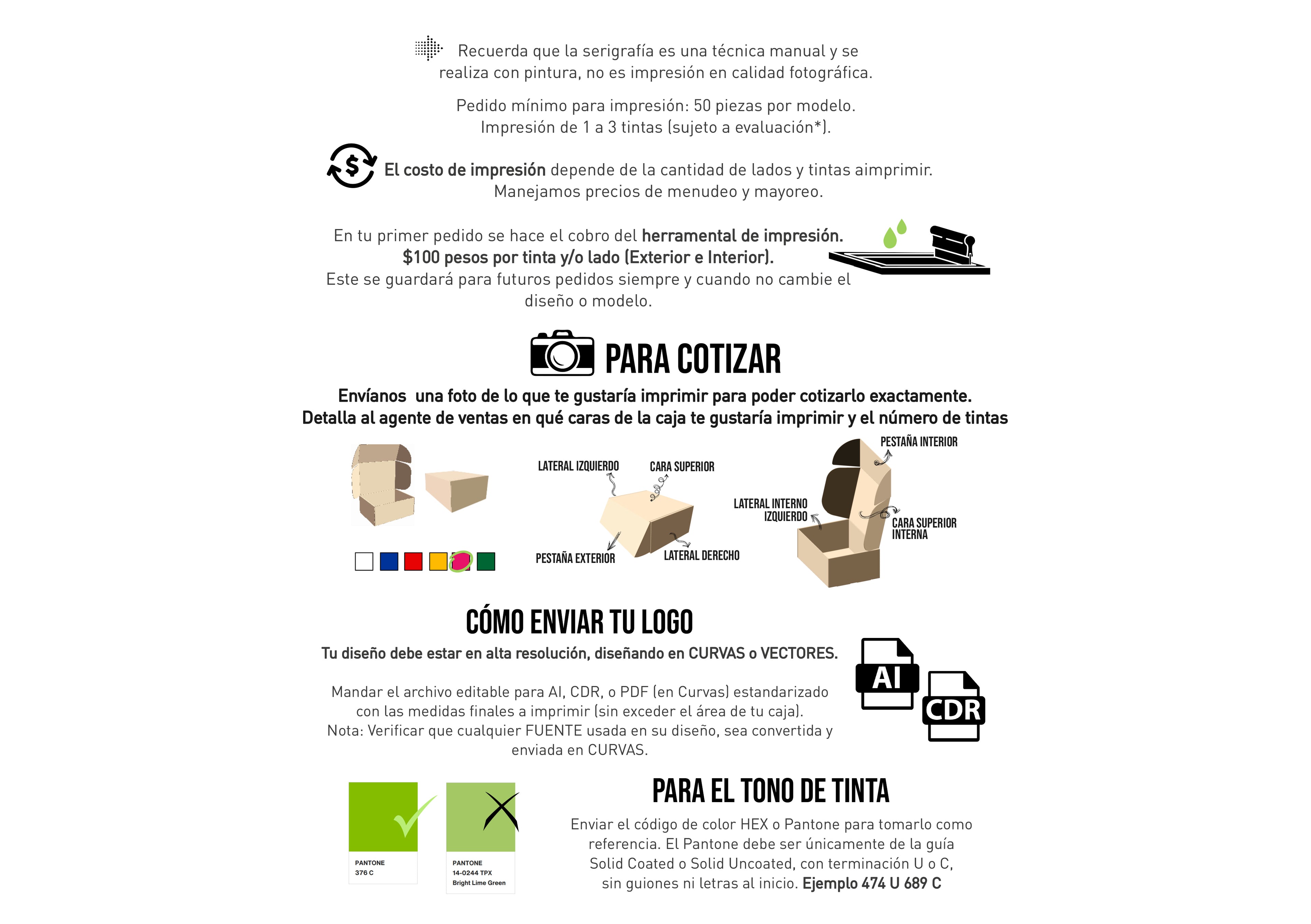En Boxology, podemos personalizar tu empaque con impresión en serigrafía. Con esta técnica es posible imprimir logos, frases o cualquier gráfico.