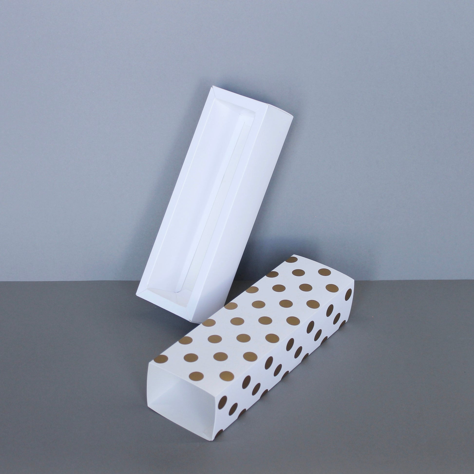 - Caja auto armable, no requiere de pegamento para su armado. Recomendada para empacar y exhibir aprox 7 ú 8 macarrones, postres o productos pequeños. También funcional para regalos de bolo en fiestas. También utilizada para artículos pequeños como bisutería y accesorios.