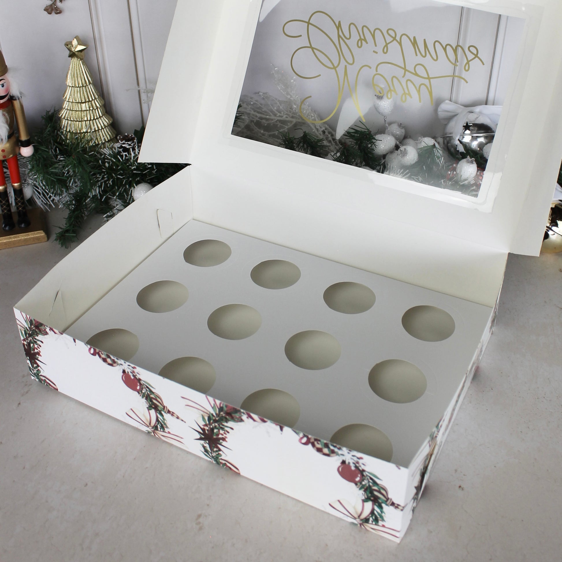 - Medidas: 38x28.5x9.5 CM (Largo x Ancho x Alto) con inserto de 12 cavidades para cupcakes.