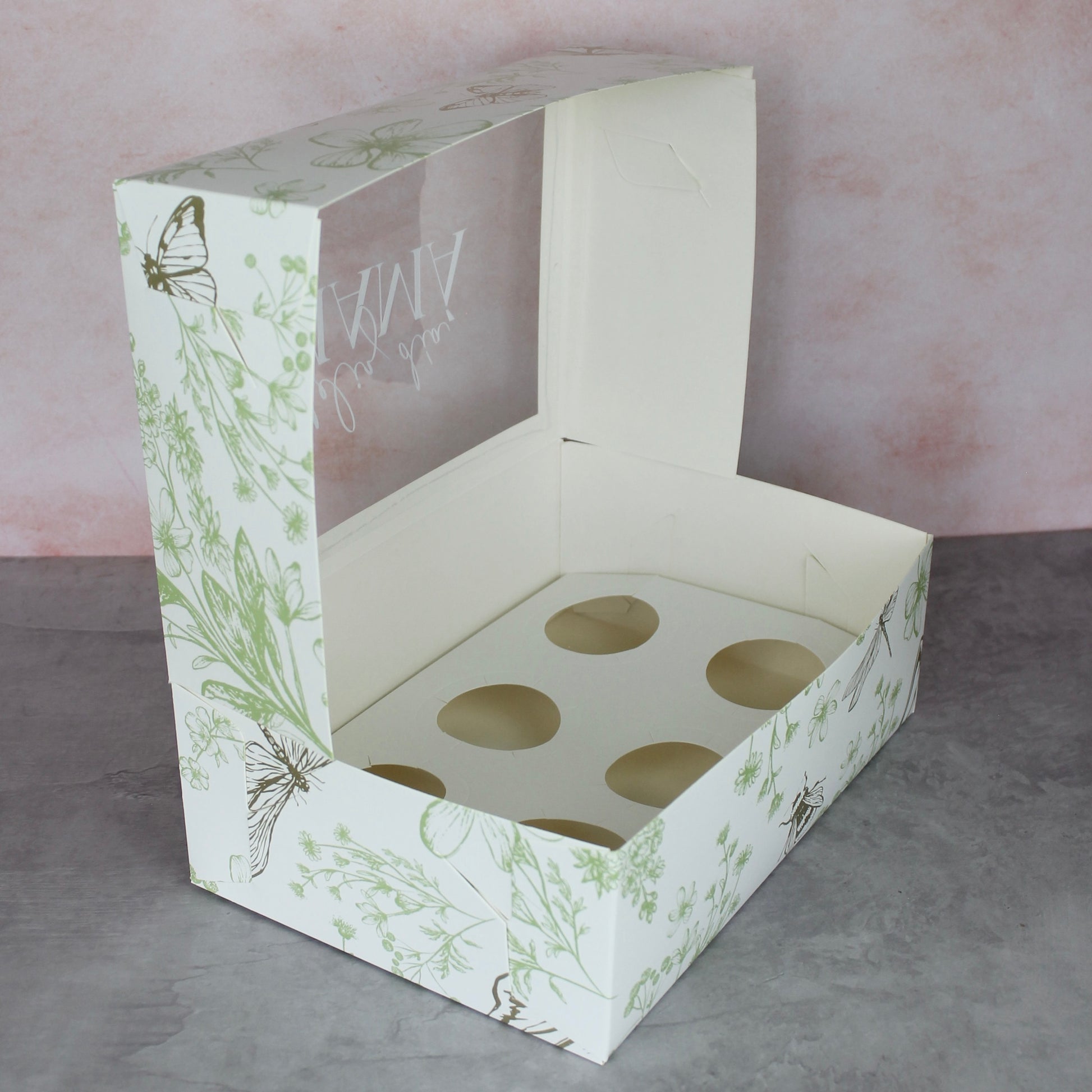 - Caja auto armable, no requiere de pegamento para su armado. Recomendada para empacar 6 cupcakes/quequitos.