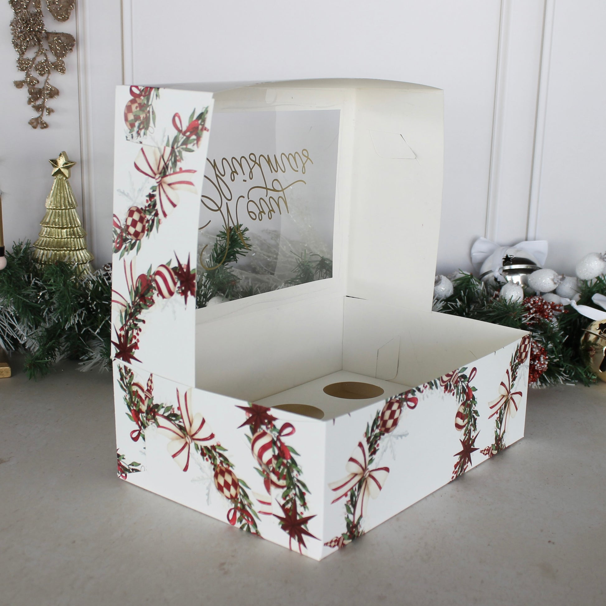 - Medidas: 28.5x19.5x9.5 CM (Largo x Ancho x Alto) con inserto de 6 cavidades para cupcakes.