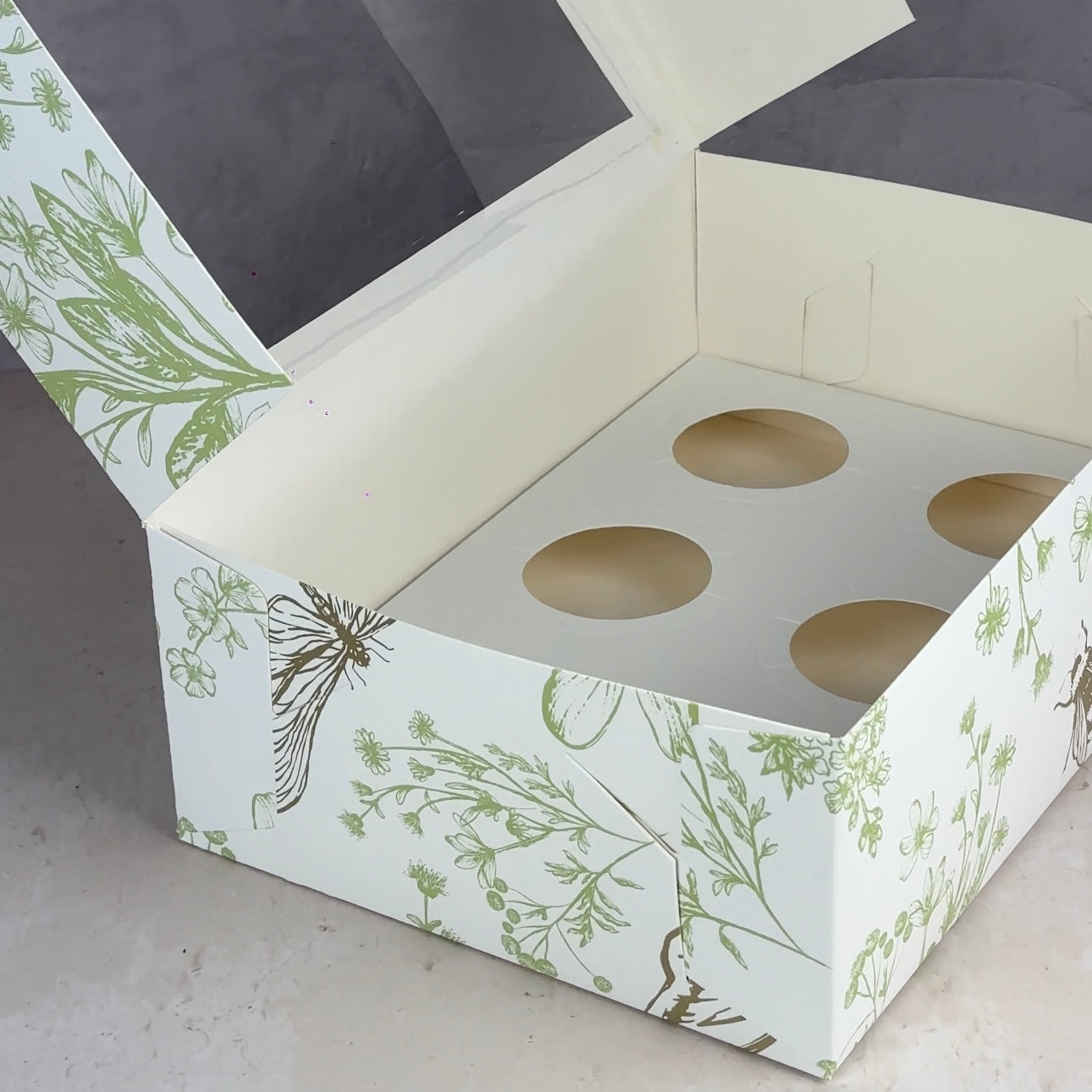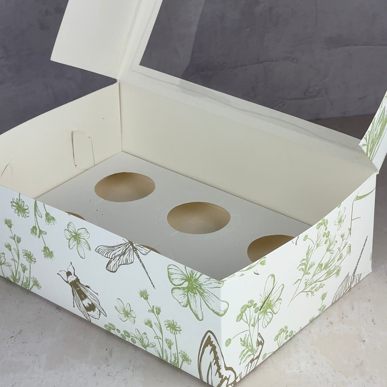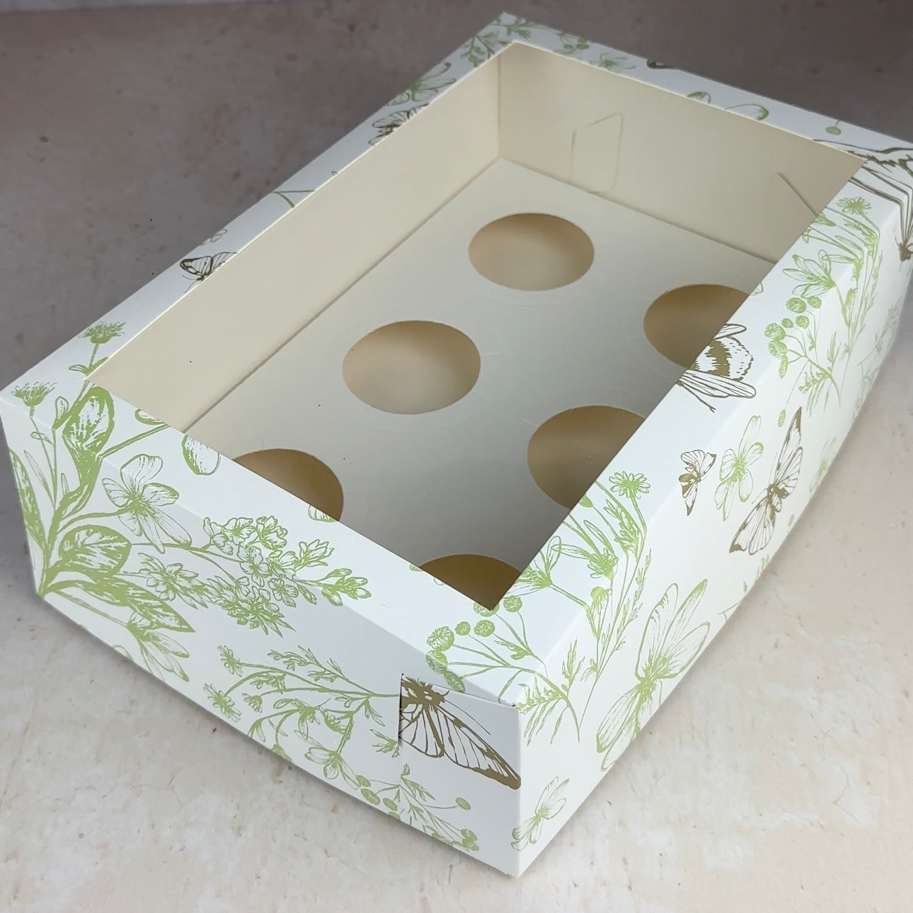 - Caja auto armable, no requiere de pegamento para su armado. Recomendada para empacar 6 cupcakes/ quequitos.