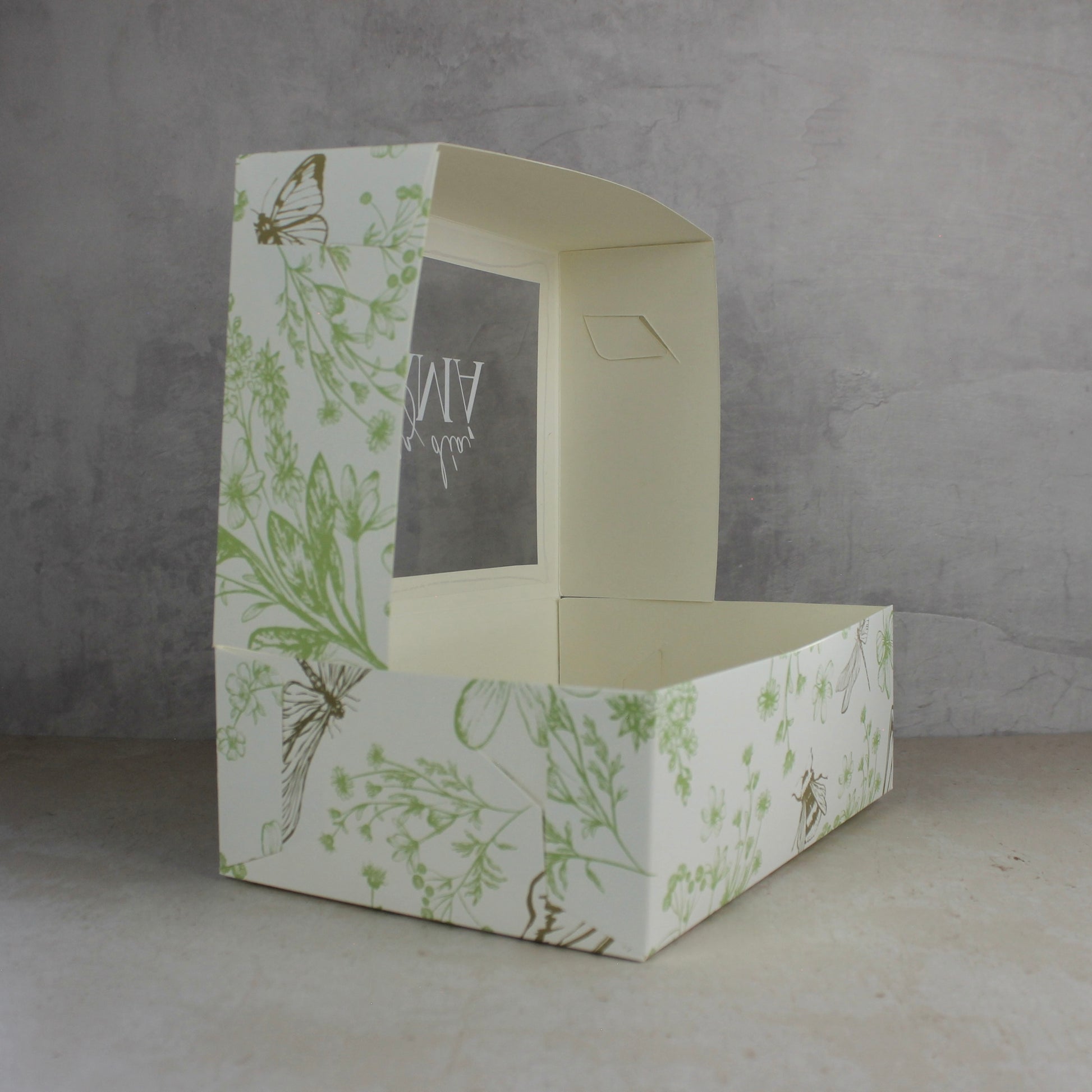 Es recomendable poner papel de grado alimenticio entre la caja y el producto. - Caja auto armable, no requiere de pegamento para su armado. Recomendada para empacar y exhibir galletas chicas, galletas estilo NY o productos de repostería, pan, conchas, croissants, también funcional para regalos de entrega personal.