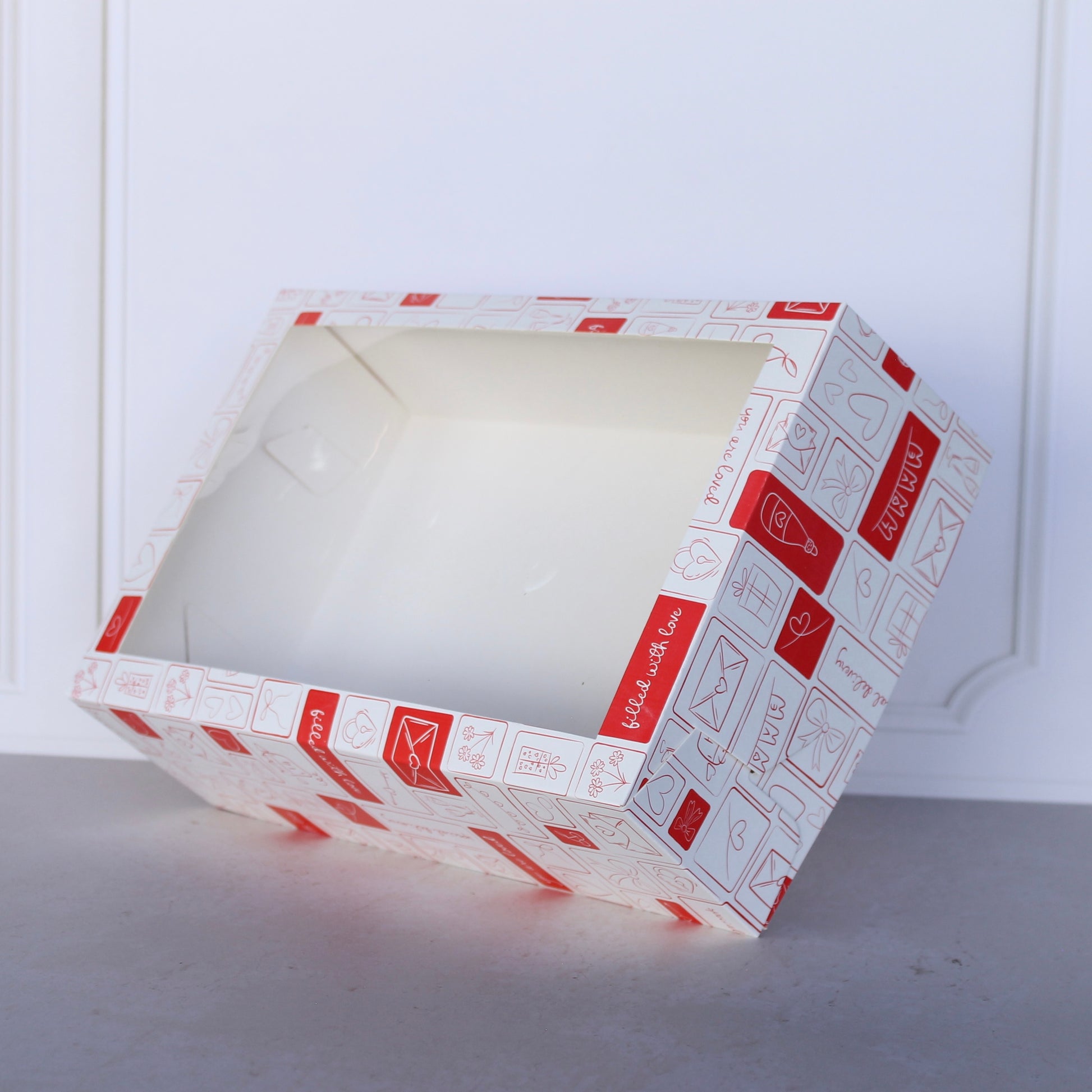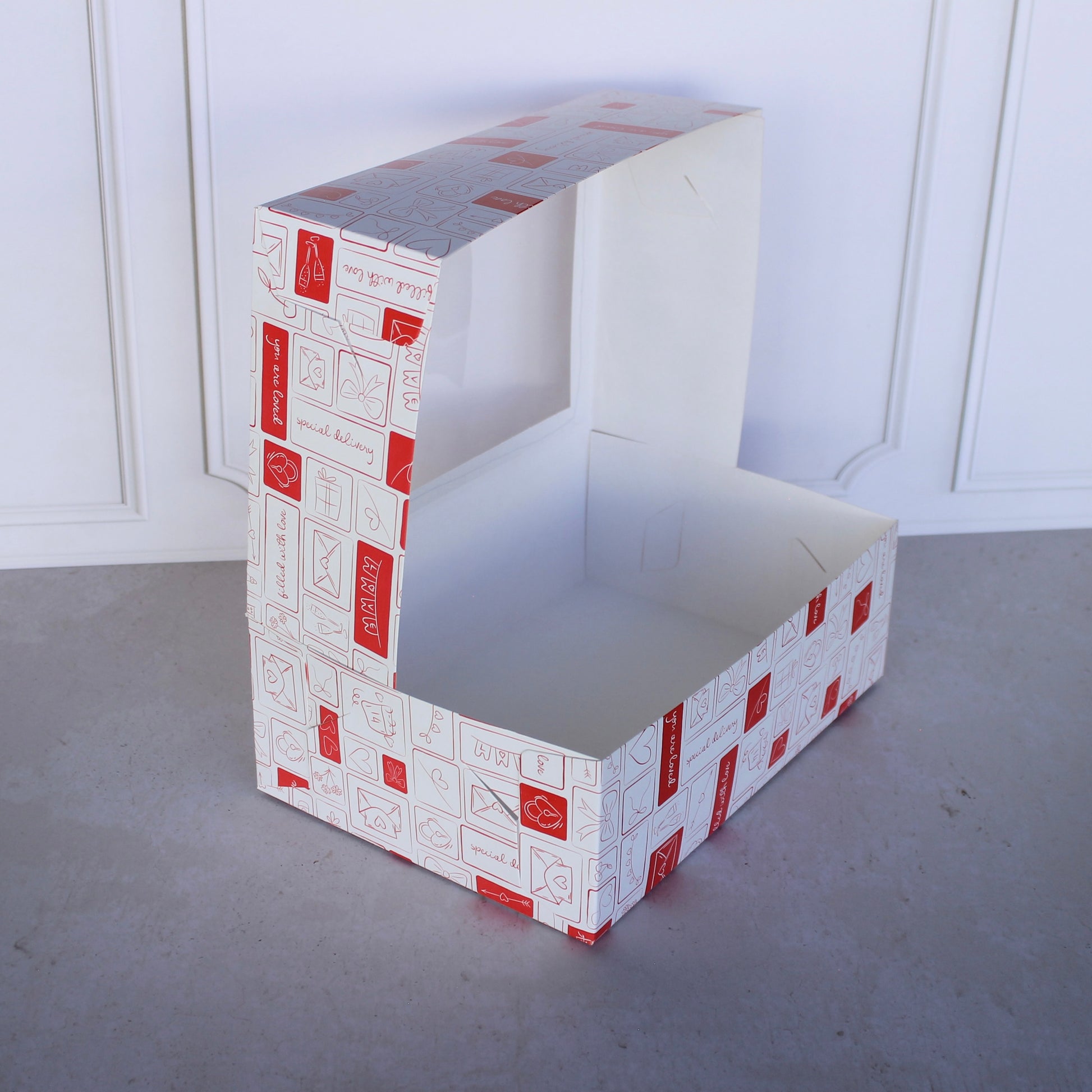 - Caja auto armable, no requiere de pegamento para su armado. Recomendada para empacar y exhibir galletas o productos de repostería, también funcional para regalos de entrega personal.