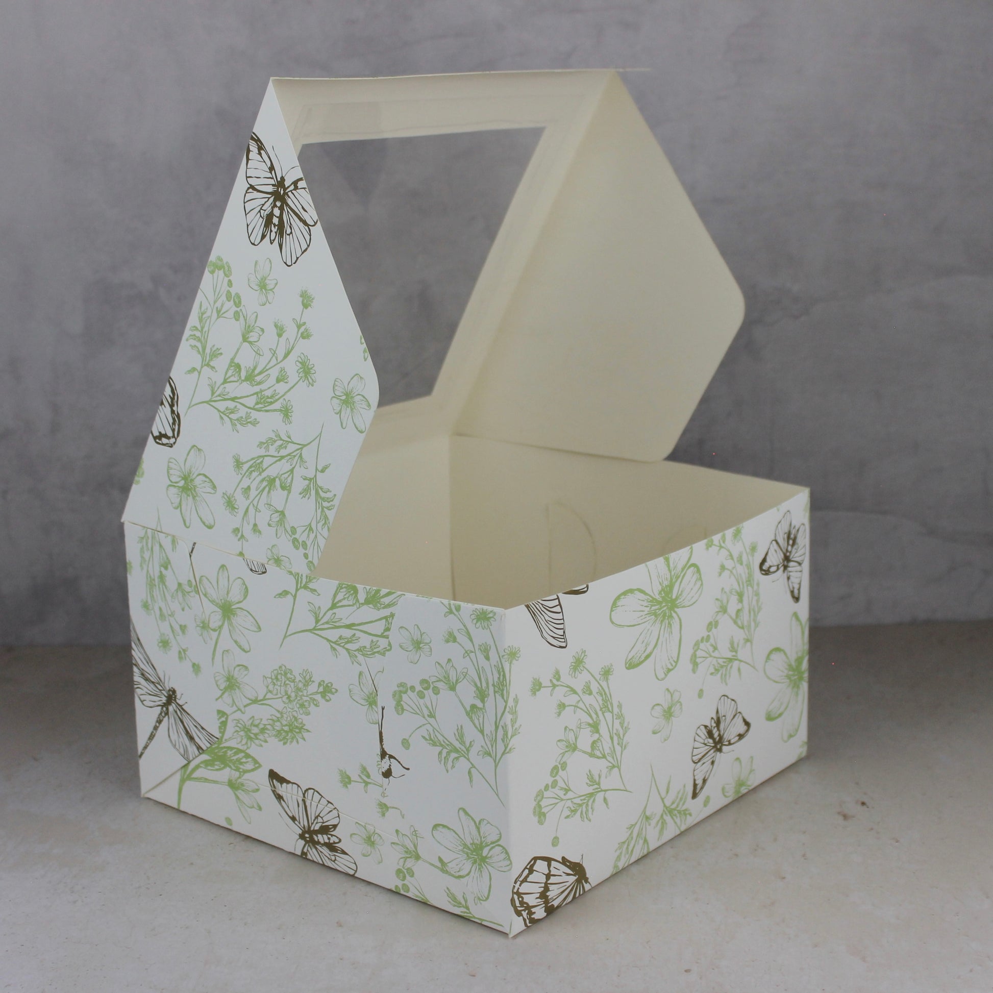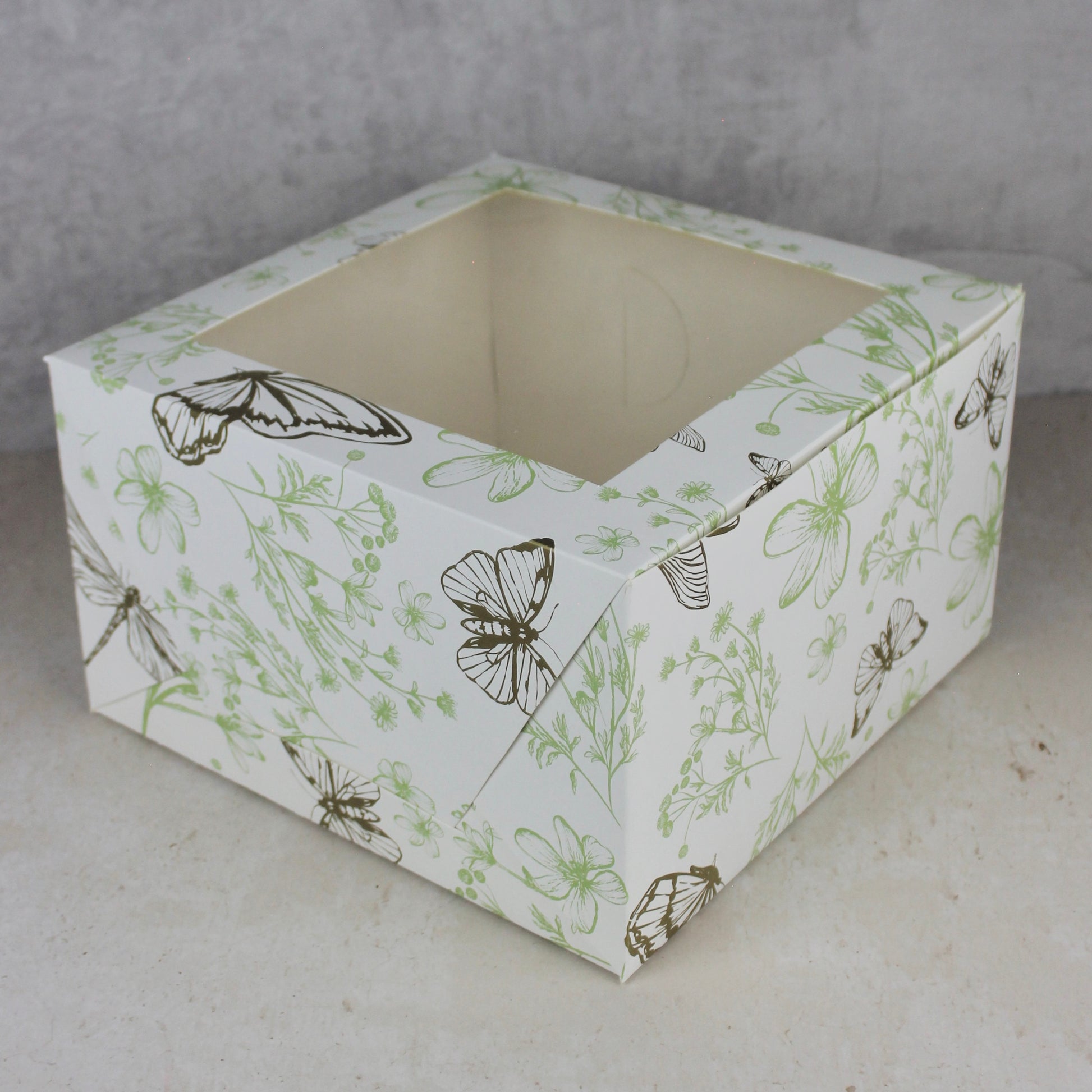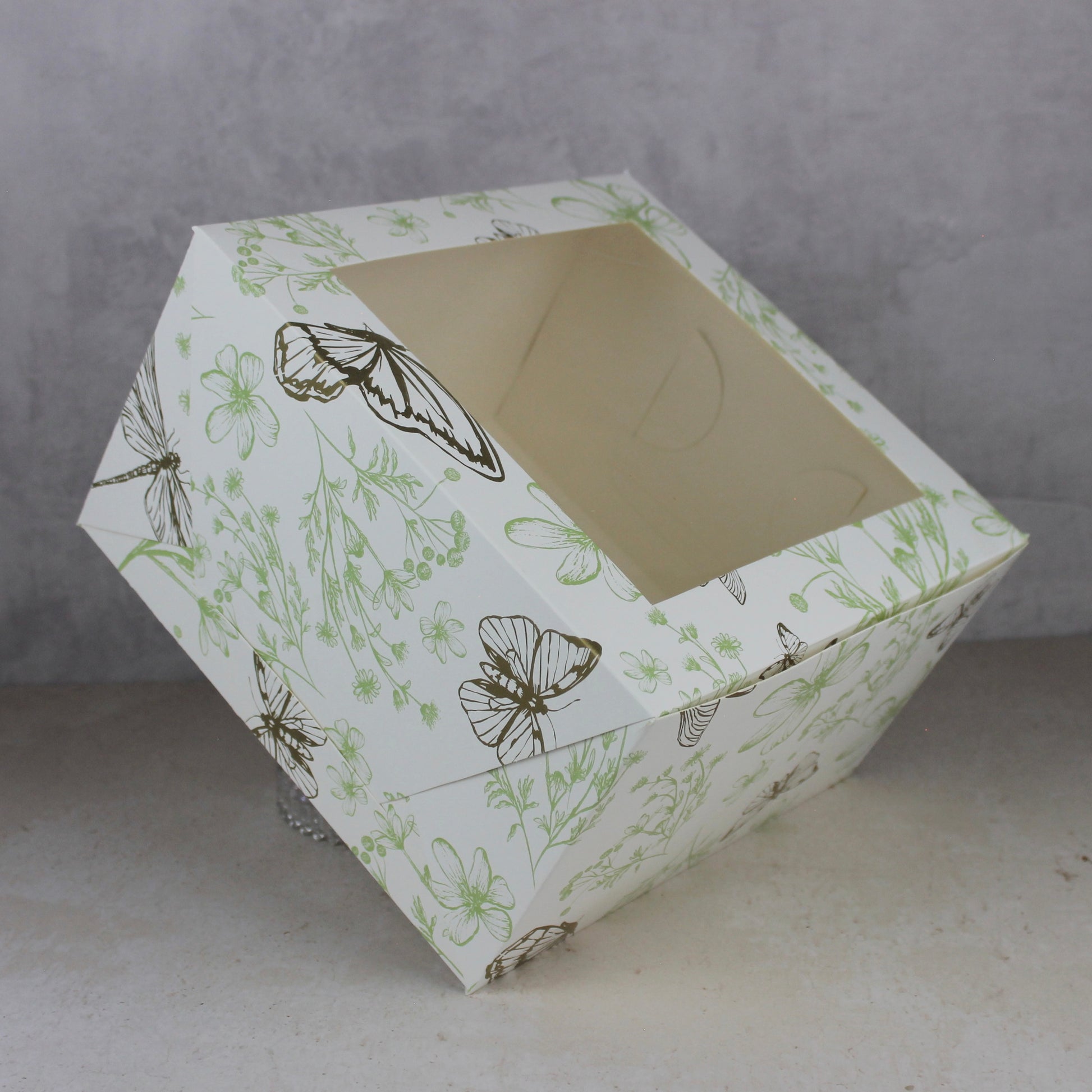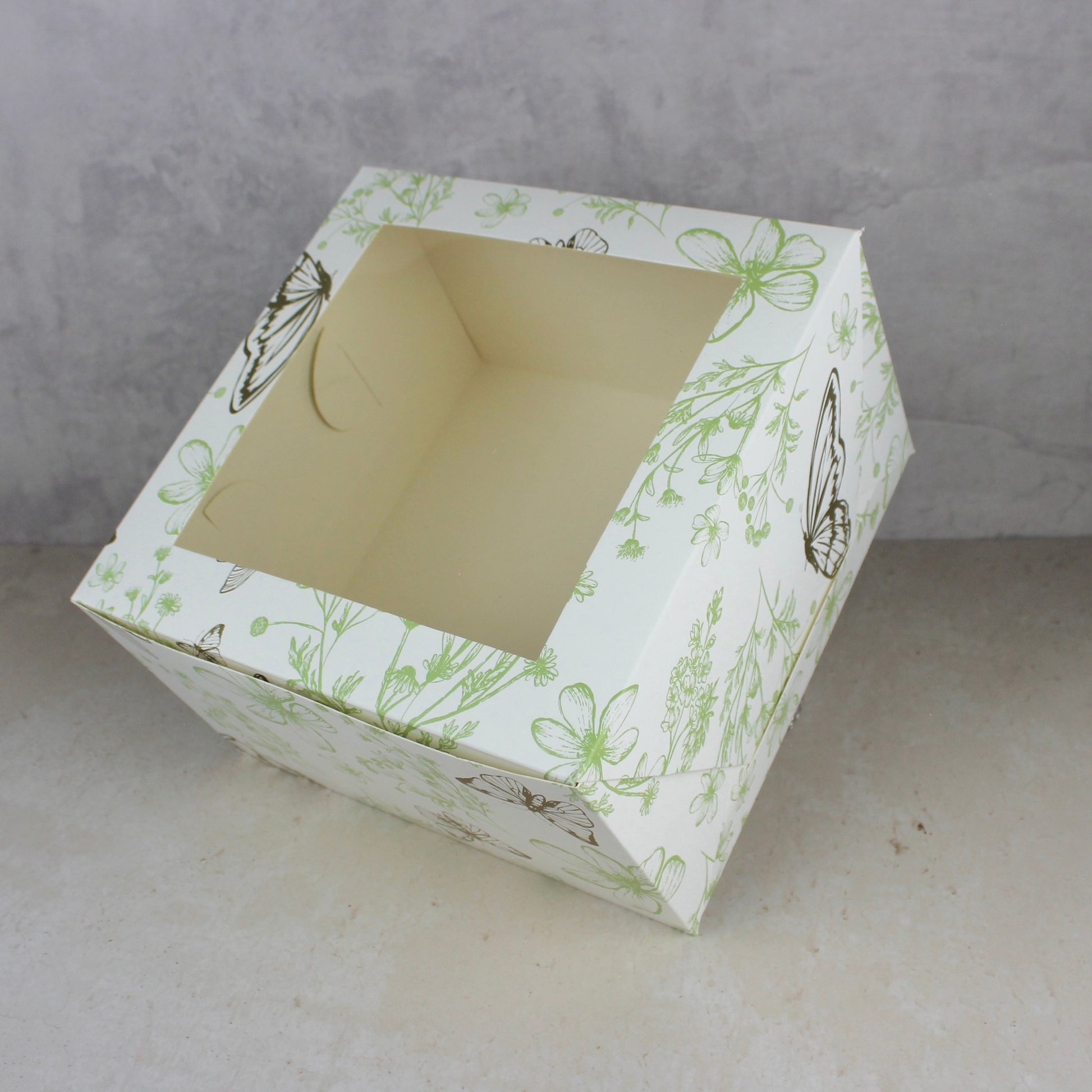 - Caja auto armable, no requiere de pegamento para su armado. Recomendada para empacar pasteles de hasta 25x25 con altura de 15 cm.