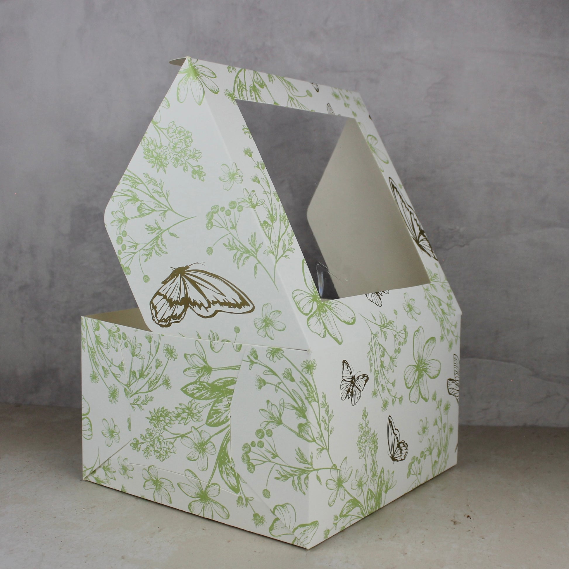 Las medidas indicadas son interiores. - Diseño: Floral color verde con detalles de mariposas y bichitos en color dorado. La ventana no incluye impresión.