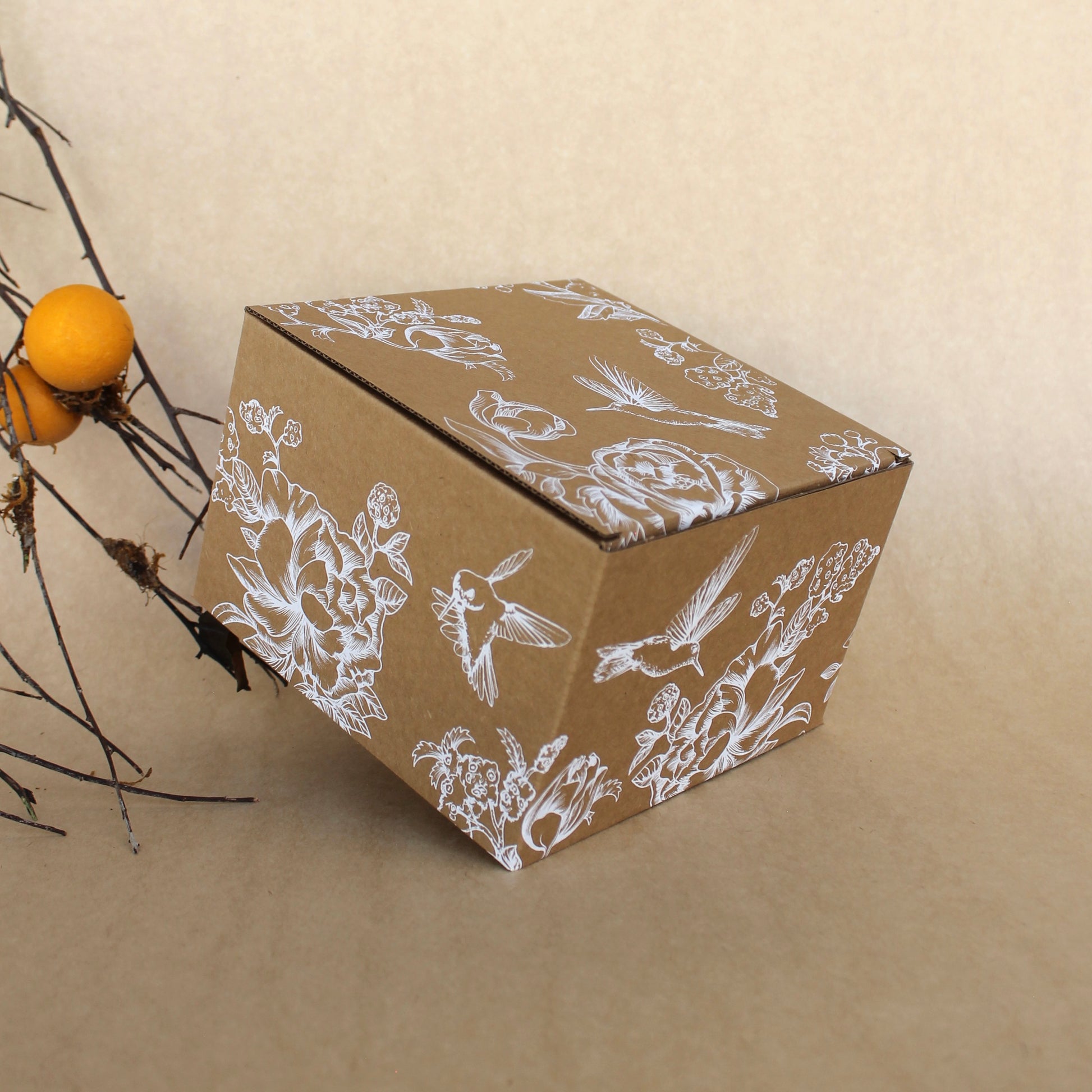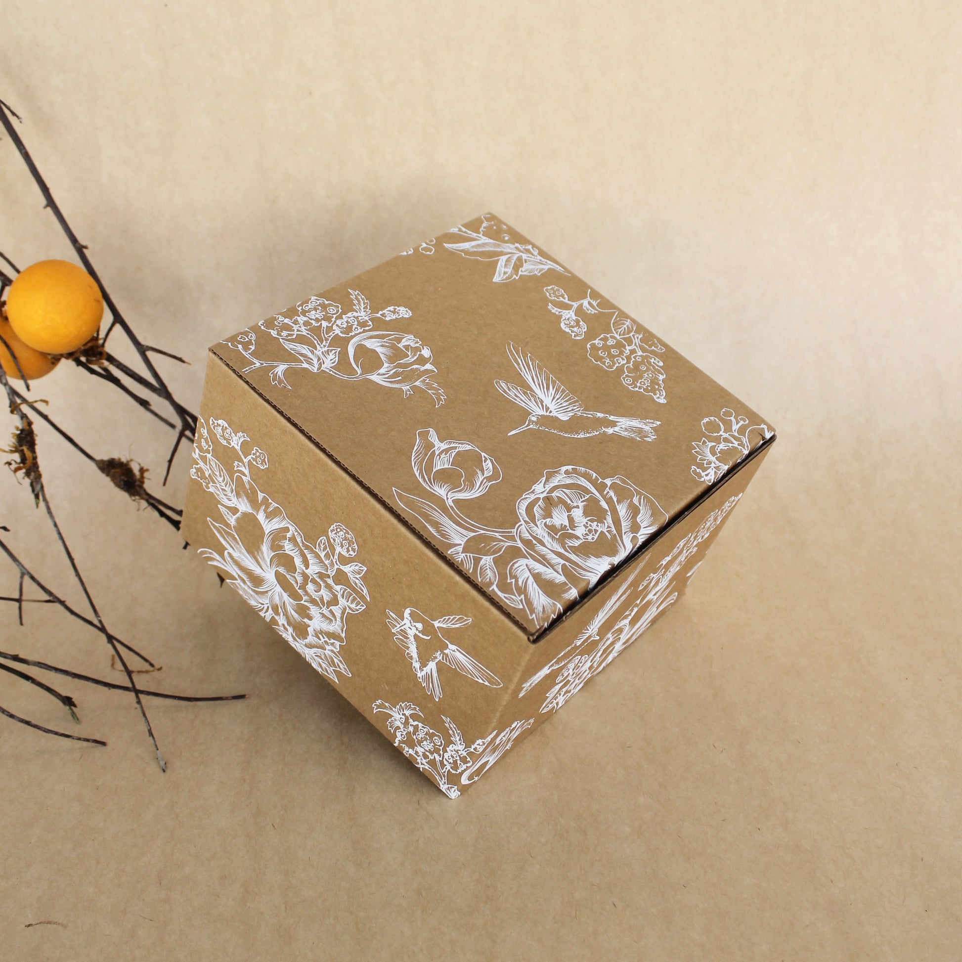 - Caja auto armable, no requiere de pegamento para su armado. Recomendada para velas y artículos pequeños como joyería, bisutería etc. También funcional para galletas o alimentos.