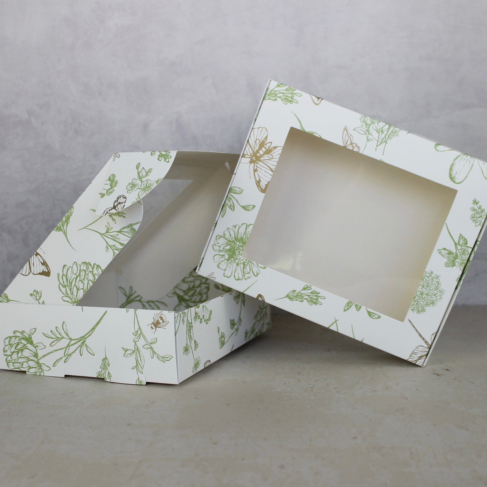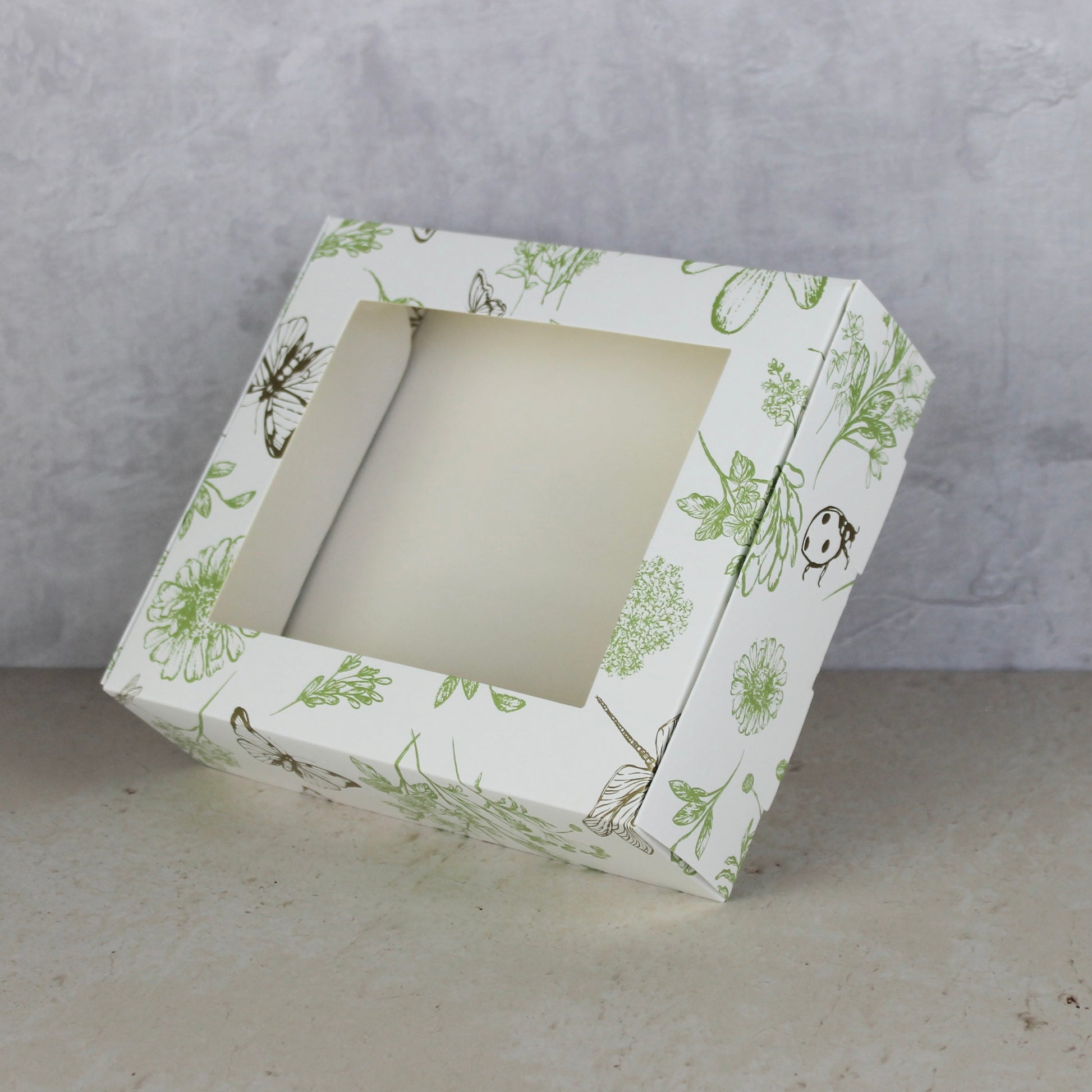 Las medidas indicadas son interiores. - Diseño: Floral color verde con detalles de mariposas y bichitos en color dorado. La ventana no incluye impresión.